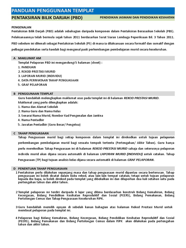 Templat Pelaporan Pbd Tahun 1 Hingga 6 Kssr Dan Semakan